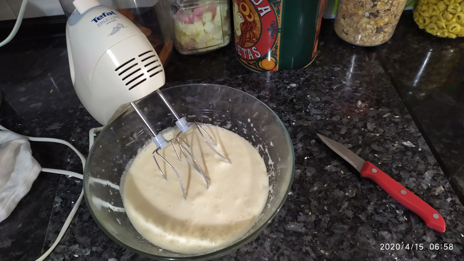 - Rallamos el limón y agregaremos el zumo del limón. Añadiremos el aceite y la leche. Echaremos la harina mezclada con la levadura. Seguiremos batiendo.